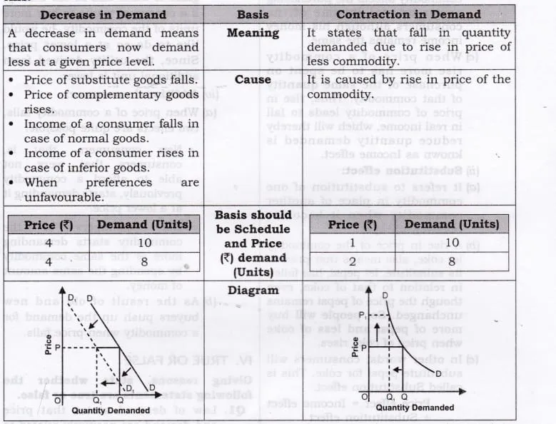 Difference between Contraction and Decrease in Demand :