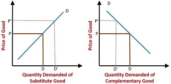 2. Price of Related Goods : Want for a commodity is also influenced by the change in the price of Related Goods. Related goods are of following two types ~