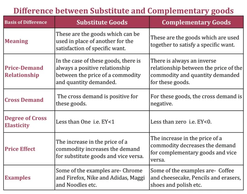 Difference between Substitute Goods and Complementary Goods :